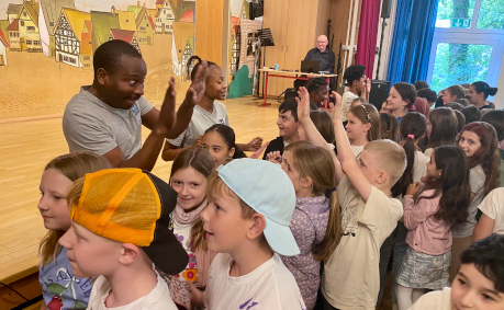 Es hat allen Kindern und Lehrern viel Spaß gemacht beim Stück zuzuschauen. Wir durften bei den Pantomimekünstlern alle abklatschen. Es war sehr cool und hat Spaß gemacht.