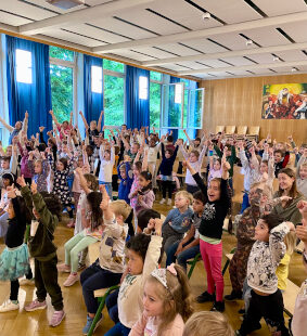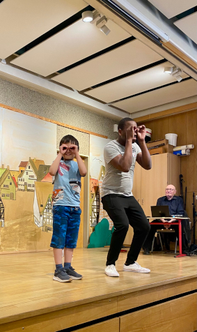 Wir gingen in die Aula, wo Nemo uns mit seiner Pantomimegruppe erwartet hat. Wir haben richtig tolle und lustige Lieder gesungen. Manche Kinder wurden nachvorne geholt und durften Pantomime vormachen. Sie haben viel Gefühlspantomime gemacht.